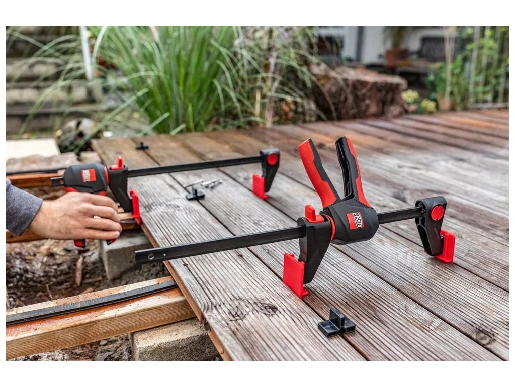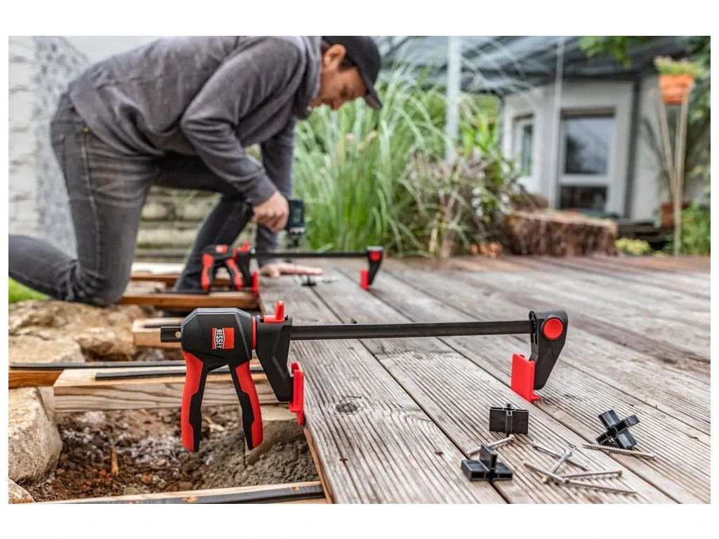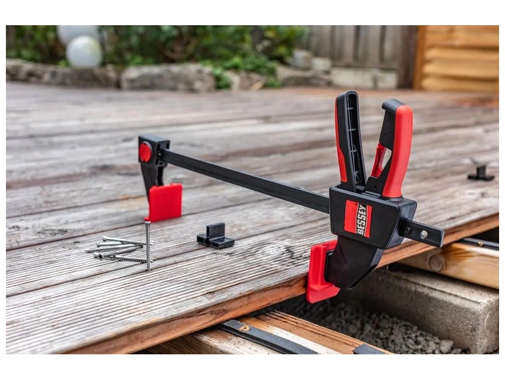 Při pokládce terasy rozhodují milimetry: prkna potřebujete rychle vyrovnat do jedné linie a zároveň opakovat stejnou mezeru mezi jednotlivými kusy. BESSEY EZ-TD – sada pro přesné vyrovnání terasových prken rozšiřuje možnosti jednoručních svěrek BESSEY EZ360 a EZL (od 300 mm) a zrychlí práci tam, kde běžně zdržuje improvizované měření a dorovnávání.