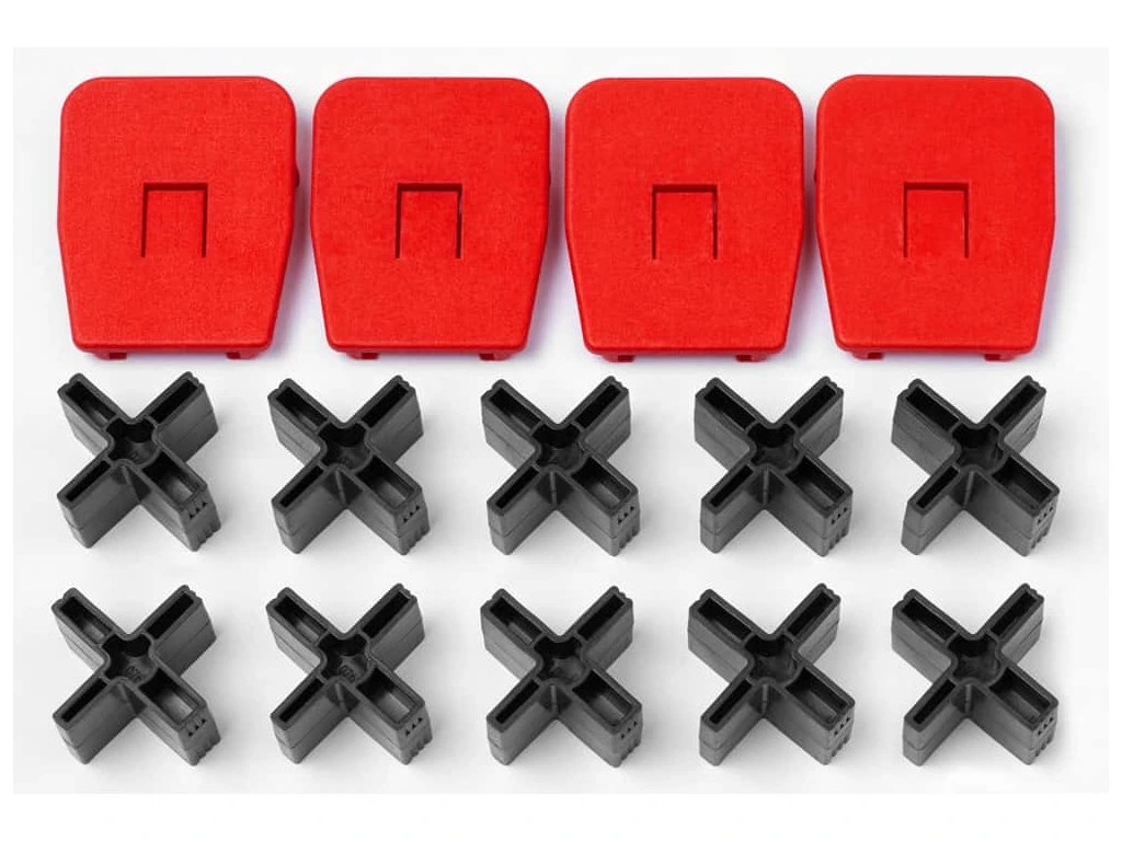 Kombinace ochranných krytek a distančních podložek pomáhá udržet prkna ve správné poloze a současně nastavit rozteč mezi prkny na 6, 7, 8 nebo 10 mm – jednoduše, bez nářadí. Výsledkem je rovnoměrná spára, čistší montáž a profesionální vzhled celé terasy. Odolný polyamid snese běžné zacházení na stavbě i v dílně.