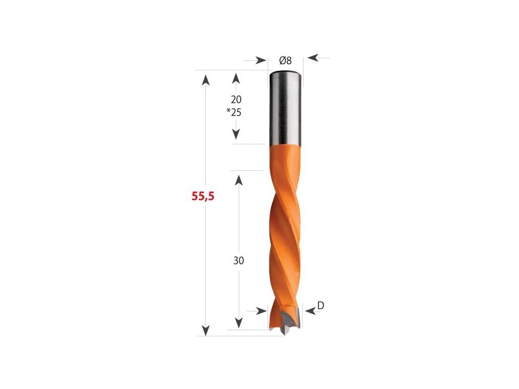 CMT | Kolíkovací vrtáky neprůchozí, stopka ø 8 mm, celková délka 55,5 mm