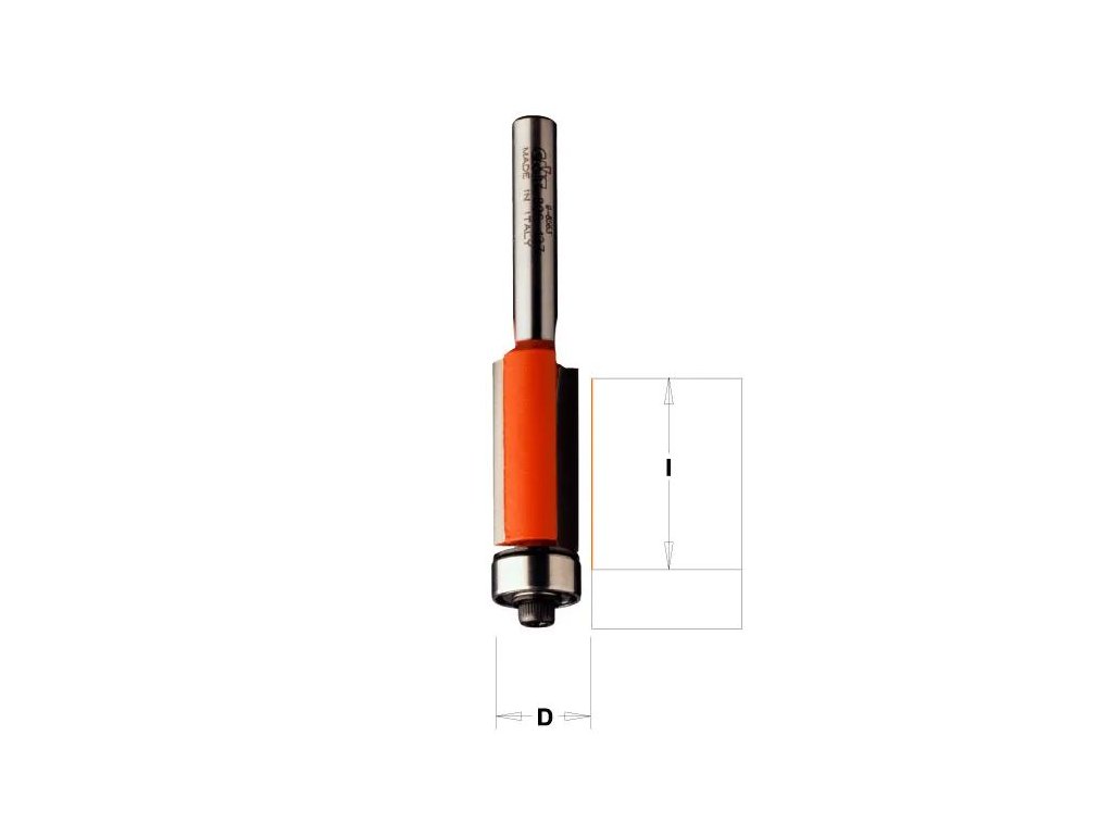 Ořezávací (zarovnávací) stopková fréza s ložiskem pro práci podél šablony – typicky rádiusy, křivky, dorovnání hran a přesahů po lepení.