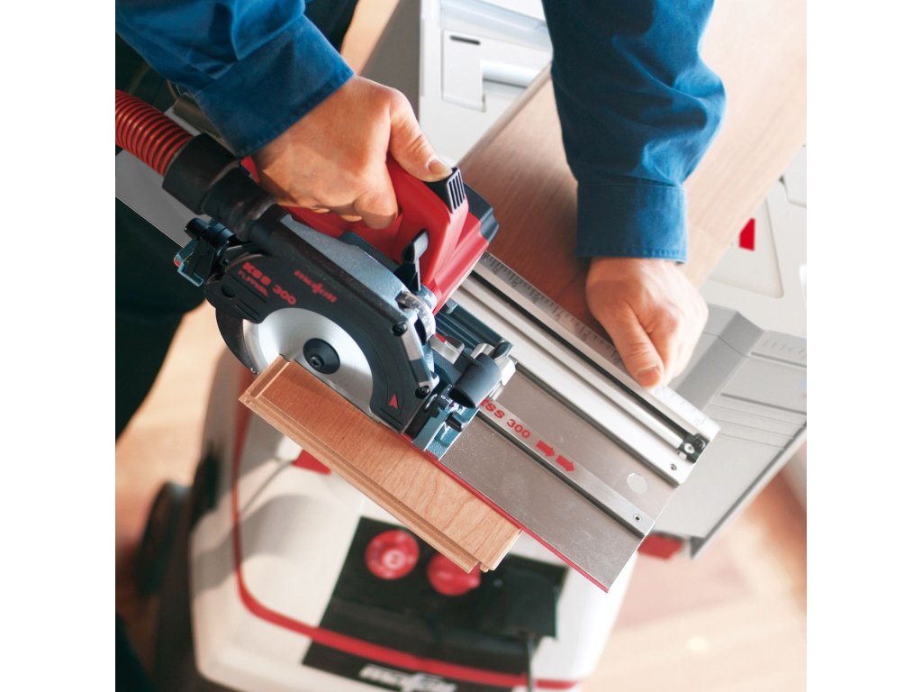Everything together in the MAFELL-MAX transport case gives a compact system for mitre, rip, cross and plunge cuts, and finally for work without a guide rail.