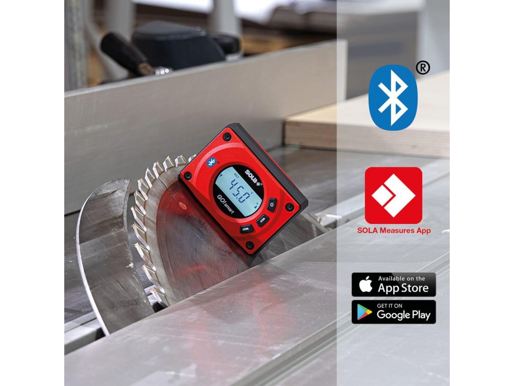 The digital inclinometer and protractor GO! smart is ideally suited for measurements where visual contact with the display is very difficult or not possible at all. When the GO! smart digital inclinometer and protractor is connected to the SOLA Measures app, the measured value will be displayed live on the corresponding mobile device