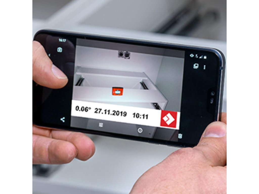 A practical tool of the application is to export values directly to the corresponding photo (Photo-Overlay). In this way, a real working situation or measurement can be photographed with a mobile device and real-time data such as the measured value, date and time are directly displayed and saved on the corresponding photo.