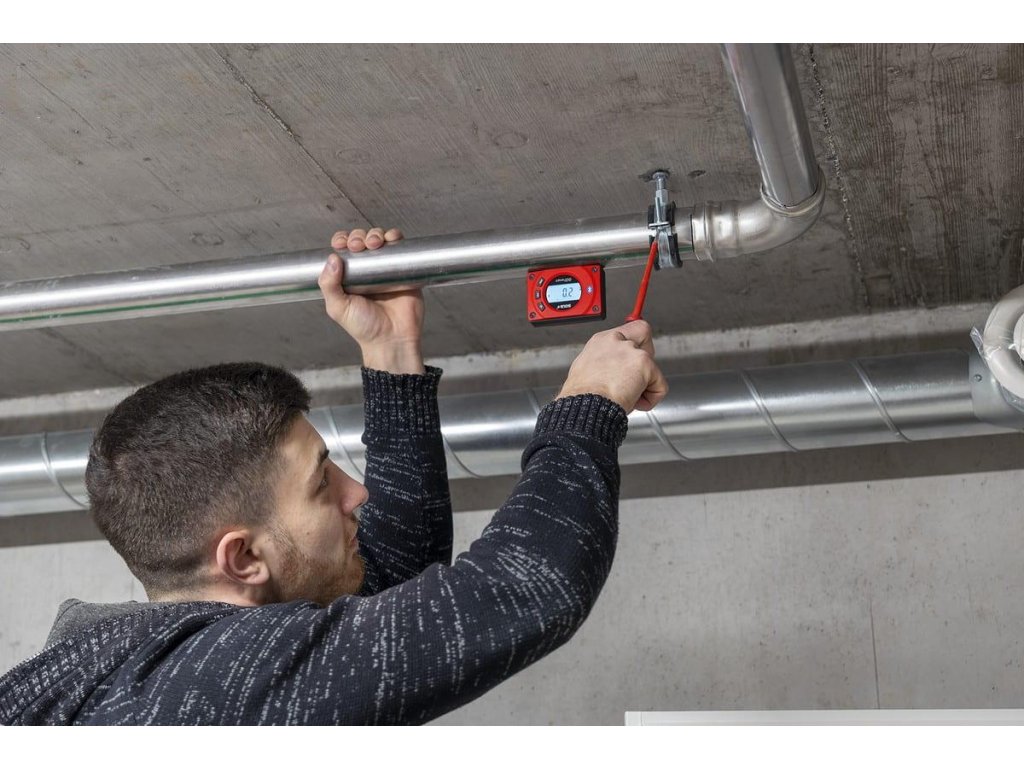 Thanks to the strong holding magnets and the integrated V-groove on the mounting surface, the digital inclinometer and protractor GO! smart holds securely even on pipes without falling