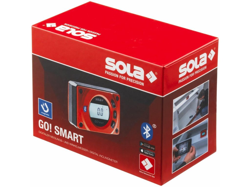 With a length of only eight centimetres, the compact GO! smart finds a place in every toolbox. Thanks to the belt pouch included in the scope of delivery, the GO! smart can also be safely stored and is always close at hand on your belt.Functions/features of Sola GO! SMART Digital Protractor: