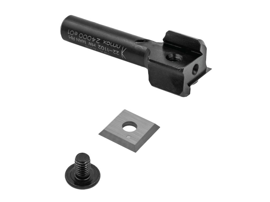 - Osazeno 2× výměnnou otočnou tvrdokovovou destičkou (žiletkou) – nástroj je připravený k práci