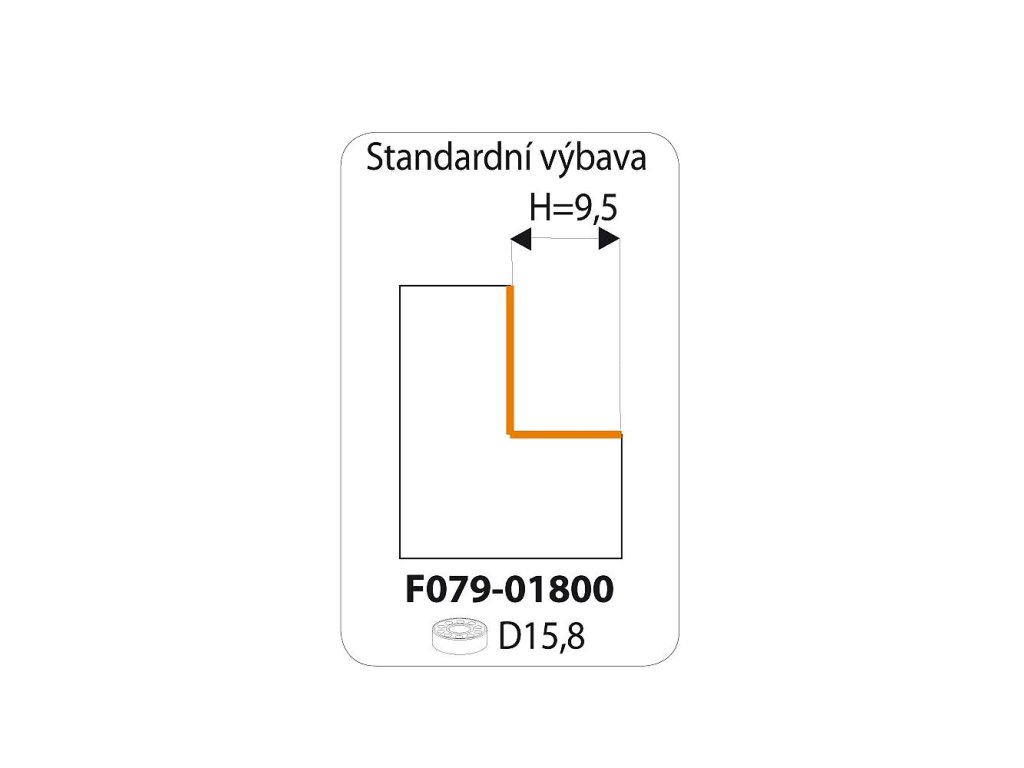 Výrobce uvádí, že fréza je osazena ložiskem B = 15,8 mm pro šířku falcu 9,5 mm.