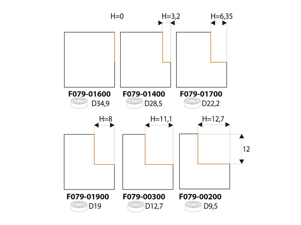 - Řezná hloubka (H): 12,7 mm