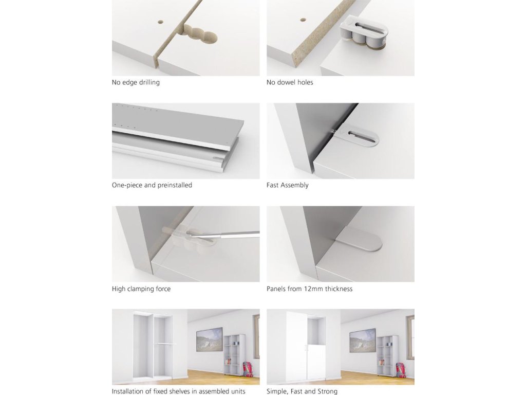 Lamello - Cabineo, jednoduchý a pevný spojovací prvek bez vrtání do hrany