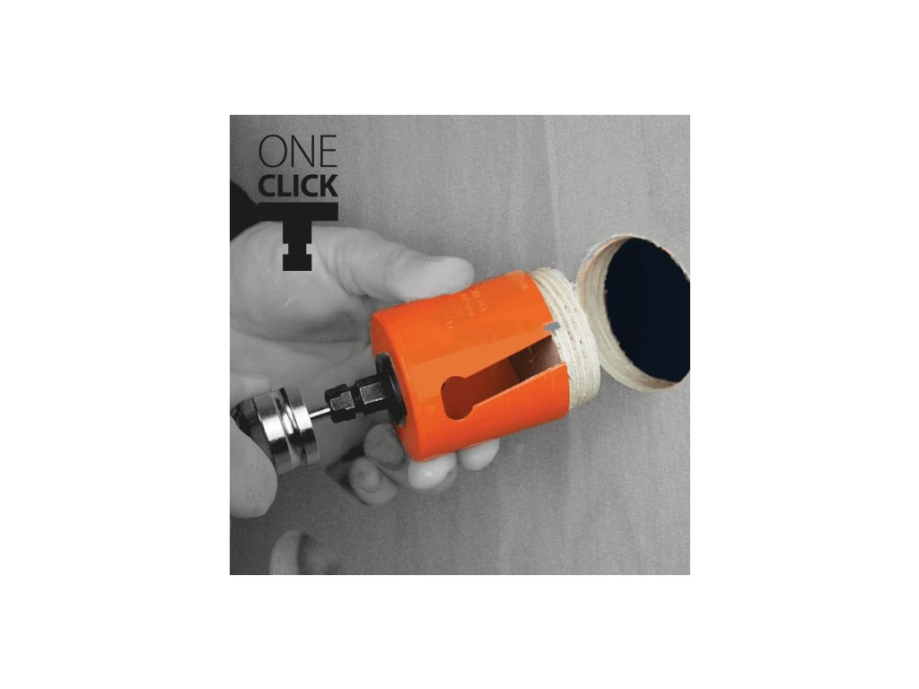 Díky patentovanému mechanismu „One Click“ lze děrovku sejmout a nasadit jiný průměr doslova během několika sekund – bez klíče, bez zdržování.