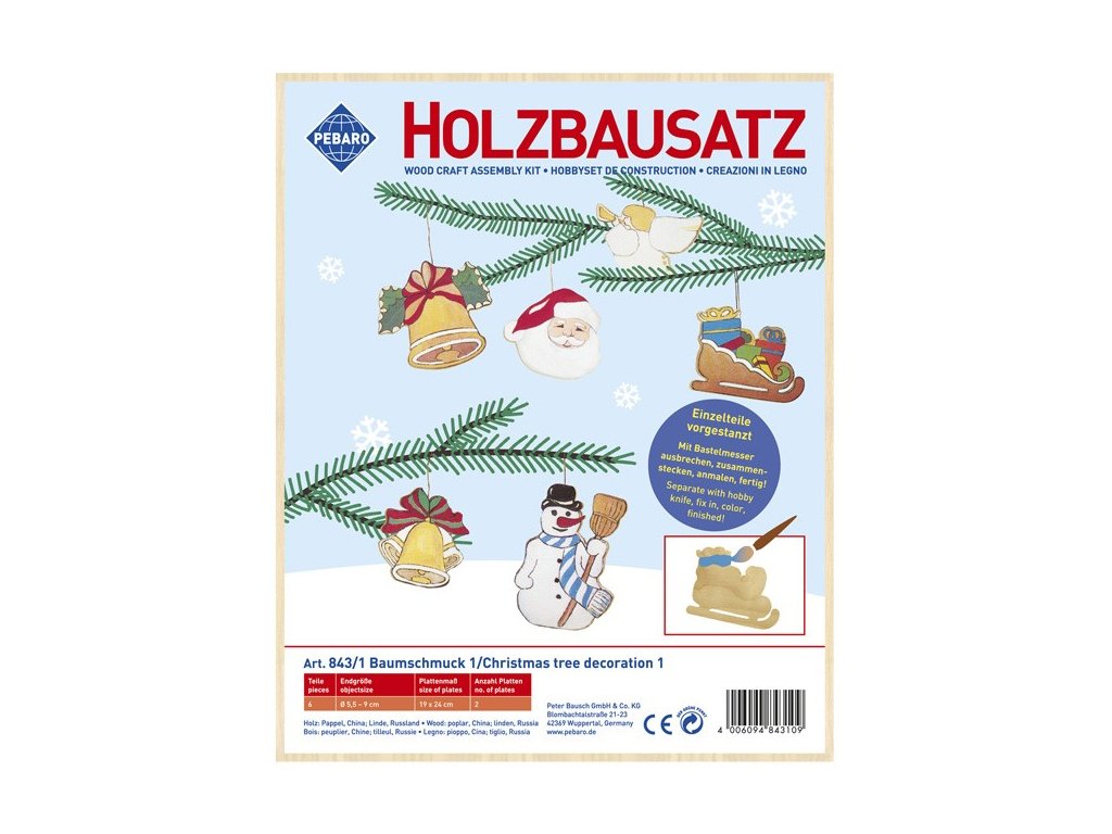 Z přesně vyřezaných dřevěných dílů si snadno sestavíte šest originálních ozdob různých tvarů, které lze dále nabarvit, nalakovat, dozdobit třpytkami nebo stužkami.
