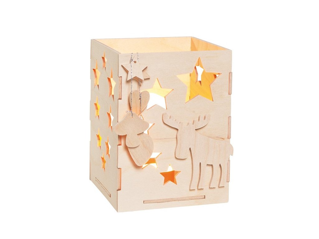 Z několika laserem vyřezaných dřevěných dílů jednoduše sestavíte svícen s motivem losa nebo houby, který se krásně hodí na stůl, parapet nebo dětský pokoj.