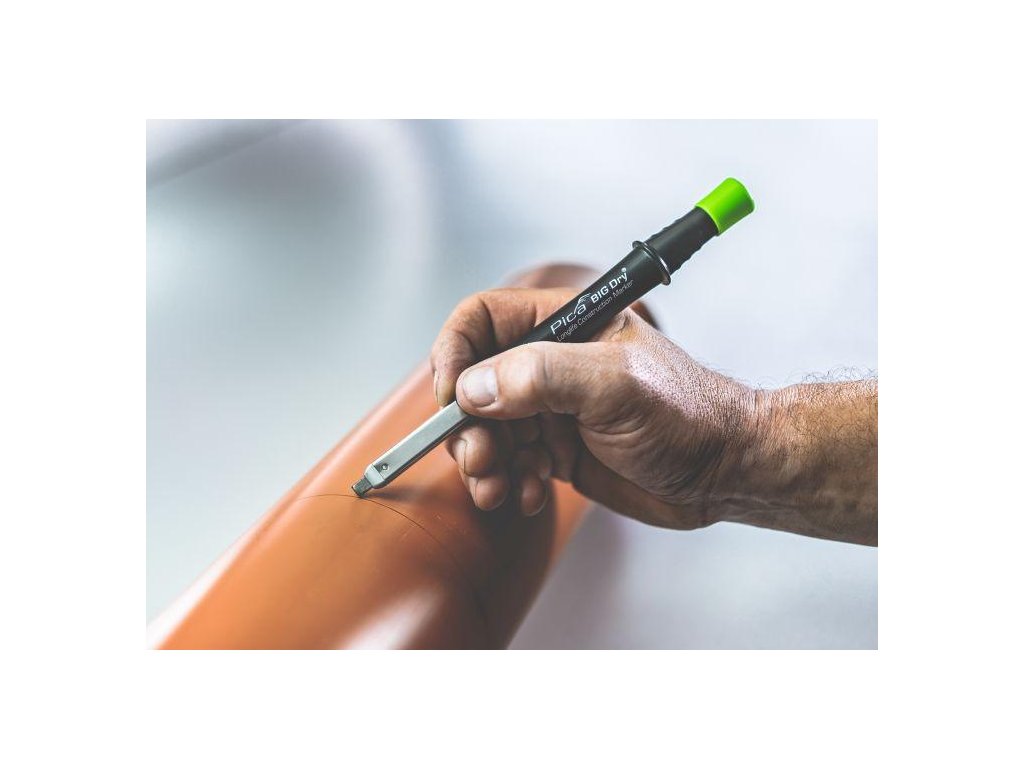 Tužka Pica BIG Dry je vybavena obdélníkovou tuhou o rozměrech 2 x 5 mm, která je jak robustní, tak dostatečně tenká pro provedení precizního značení. Tato tuhost a tvar umožňují snadné a přesné značení na různé materiály, ať už se jedná o hladkou plochu dřeva, kameninu, cihlu či dokonce kov.