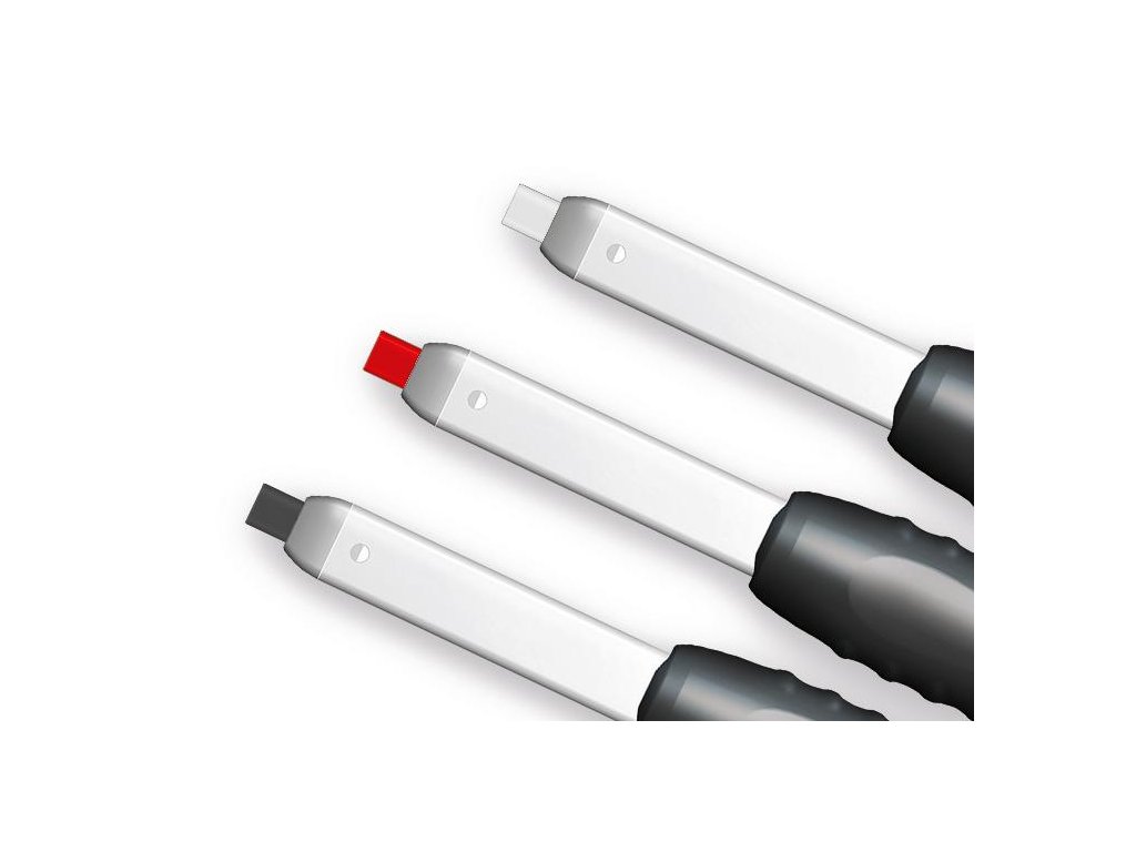 - Její speciální vyměnitelné tuhy umožňují značení téměř na všechny povrchy, bez ohledu na to, zda jsou suché nebo mokré, lesklé nebo hrubé, zaprášené či mastné.