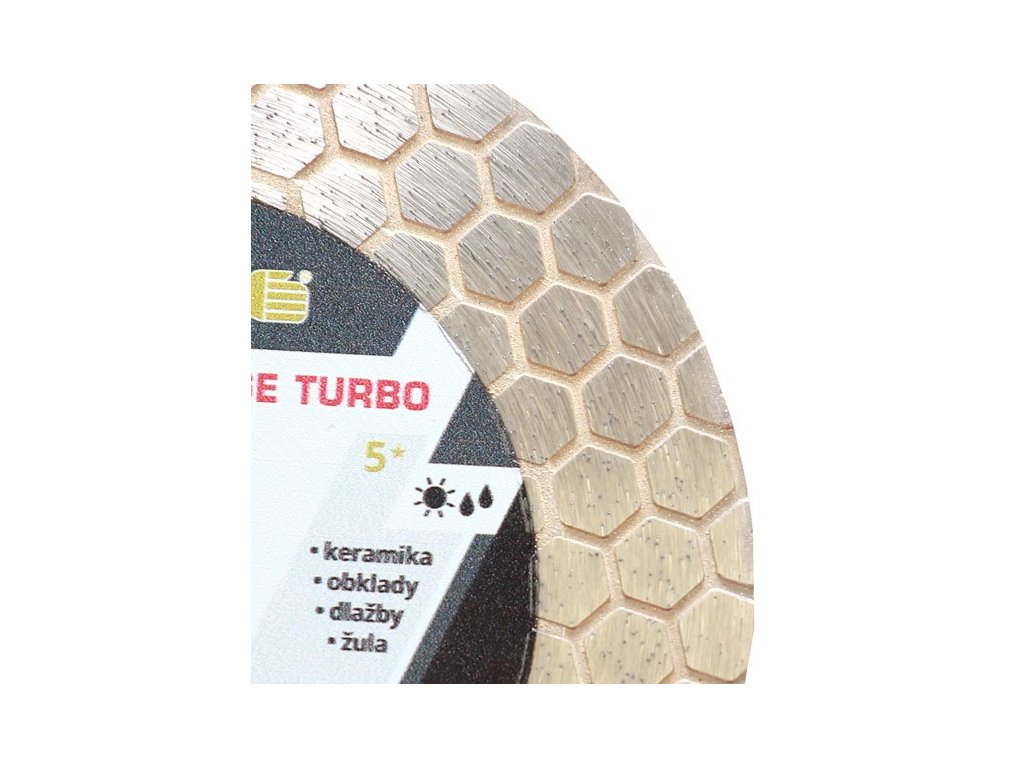 Celoobvodový „V“ turbo segment pro čistý řez a dokonalé sražení hrany.