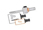 Sada adaptérů Mandrex MX2P0052HEB umožňuje zvětšit již vyvrtaný otvor pomocí dvou děrovacích pil (vrtacích korunek) různých průměrů na jednom trnu – snadno, přesně a bez poškození materiálu.
