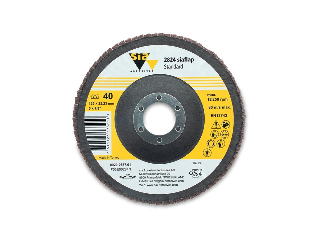 Lamelový kotouč SiaAbrasives SiaFlap 2824 je určený pro efektivní broušení nelegované a nízkolegované oceli. Kotouč využívá zirkonový korund, který poskytuje vysoký úběr materiálu i při vyšším přítlaku a zároveň prodlužuje životnost brusiva. Řada 2824 vysoký výkon, dlouhou životnost a stabilní kvalitu povrchu až do úplného opotřebení.
