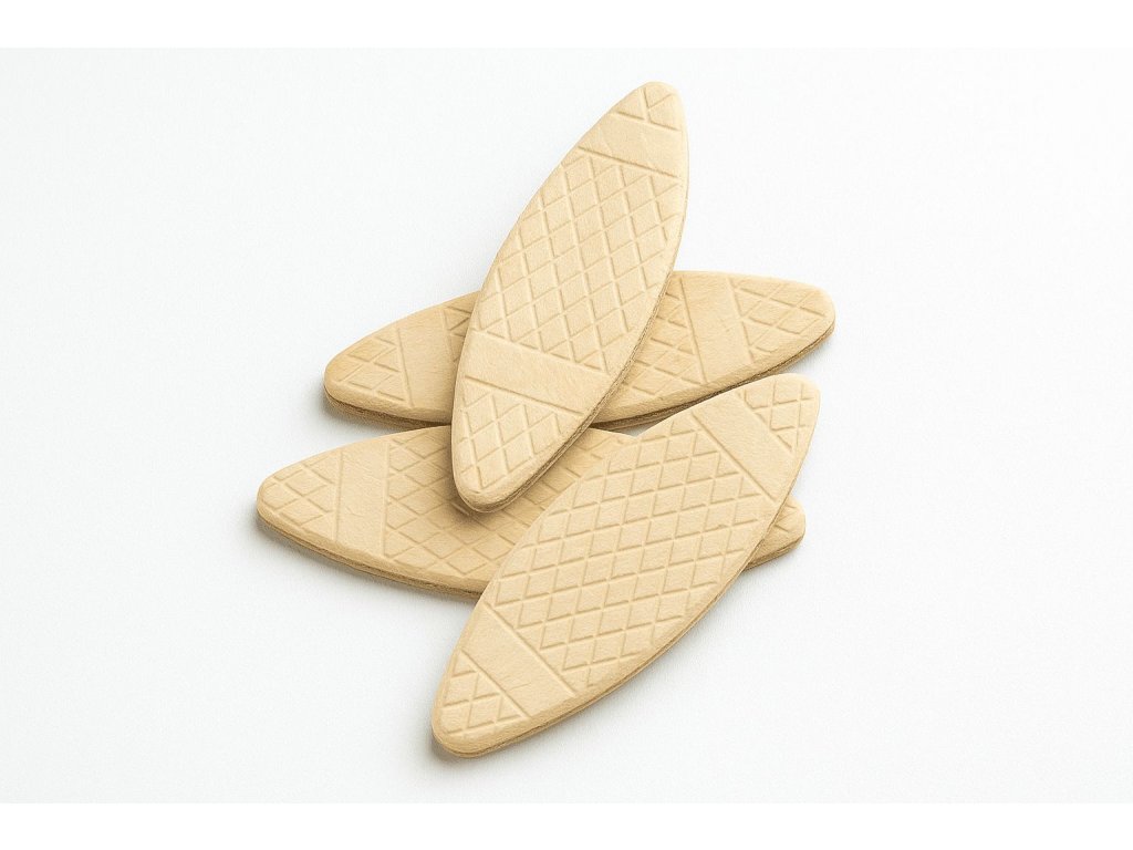 Tyto dřevěné spojovací lamelky jsou vyrobeny z buku ( březové jsou dlouhodobě nedostupné),