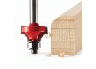 Vyduté zaoblení (rádius R2) pro čisté zakončení hran v masivu i deskových materiálech. Ložisko na konci nástroje vede frézu po hraně – úběr je rovnoměrný i při delších záběrech.