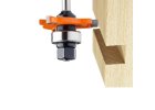 Rychlé falcování (polodrážka) bez vodicí lišty – vedení zajišťuje ložisko. V sadě je 6 vyměnitelných ložisek, kterými nastavíte šířku falcu v rozsahu 0–12,7 mm.