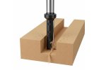 Na spoje kuchyňských pracovních desek – čisté, přesně lícující drážky a pevné spoje. Pro postupné závrtávání, drážkování a dokončování v laminu, dřevotřísce, MDF, tvrdém dřevu i Corianu. Vhodná pro ruční frézování i CNC.