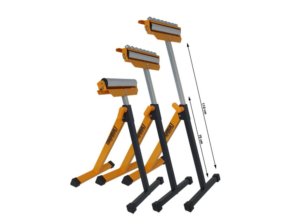 ToughBuilt TB-S200 je masivní válečkový stojan s nastavitelnou výškou 70–110 cm. Poskytuje stabilní oporu dlouhým obrobkům a díky ocelové konstrukci a hladkému válečku zaručuje spolehlivou manipulaci.