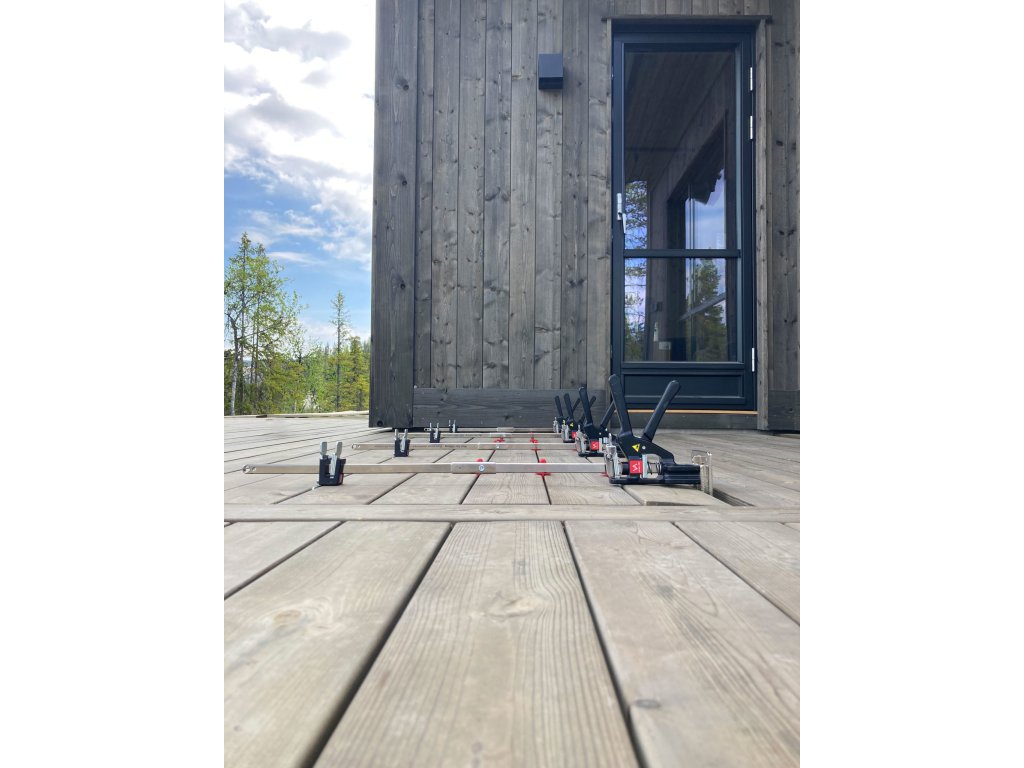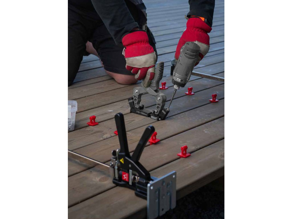 Ideální pro profesionály i kutily při pokládce dřevěných teras, podlah a konstrukcí, kde je nutné přesné vyrovnání a pevné stažení prken.