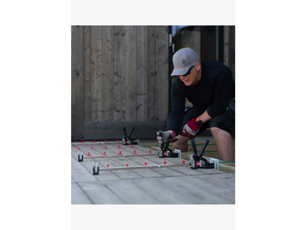 Sada Decking Kit DK2 rozšiřuje možnosti vašeho Viking Arm o funkce ideální pro pokládku teras. Díky prodlužovacím nástavcům a uzamykacím svěrkám snadno stáhnete, vyrovnáte a upevníte několik prken najednou – rychleji, přesněji a s menší námahou.