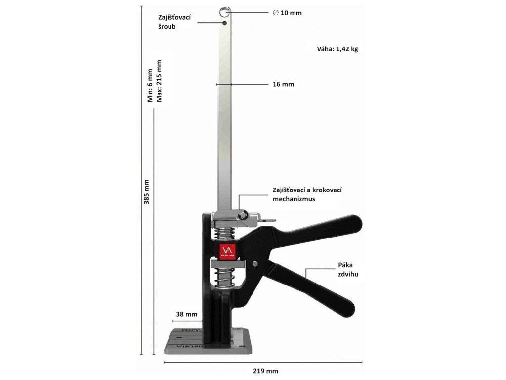 Přepravní kufr ani samotný ruční zvedák Viking Arm není součástí dodávky.