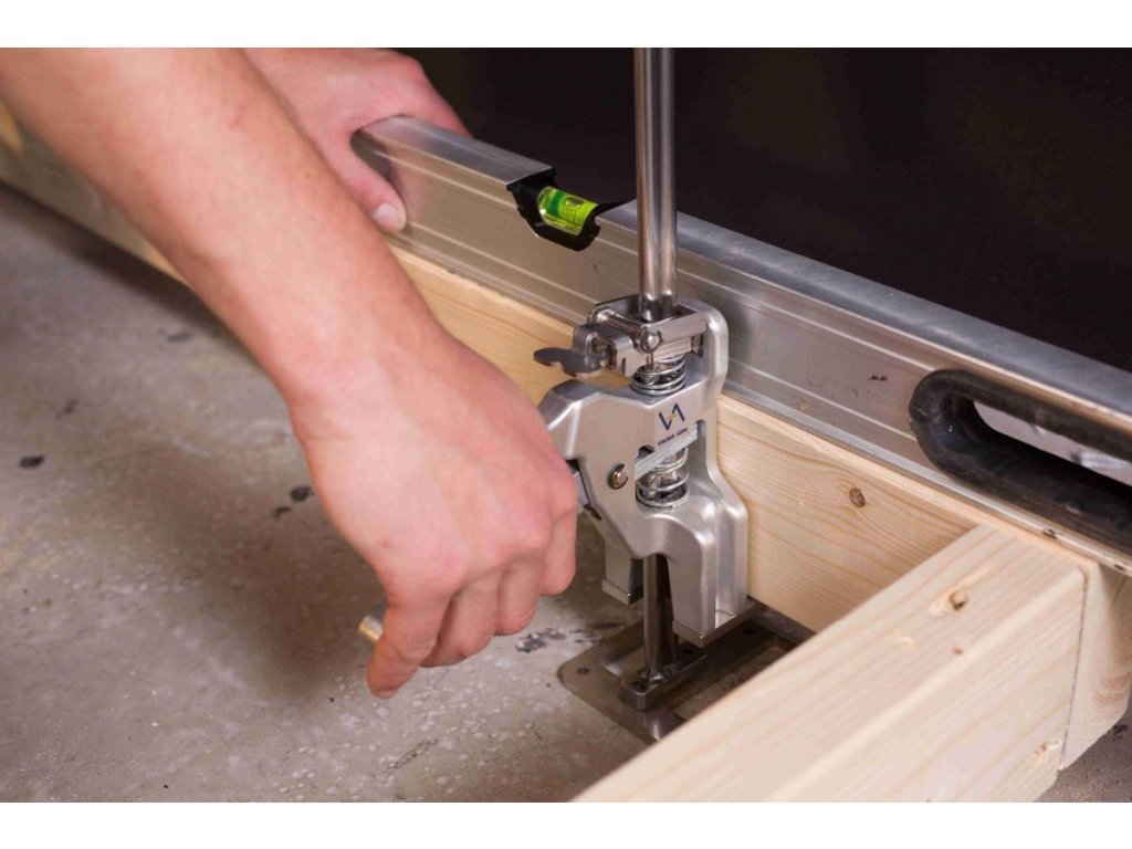Tento nástroj je revoluční pomocník, který při montáži plně nahradí druhého člověka. Je univerzální, robustní a neocenitelný pro práci s kuchyňskými linkami, okny, dveřmi, skříněmi, podlahami, terasami, ploty, těžkými skleněnými příčkami a mnoha jinými